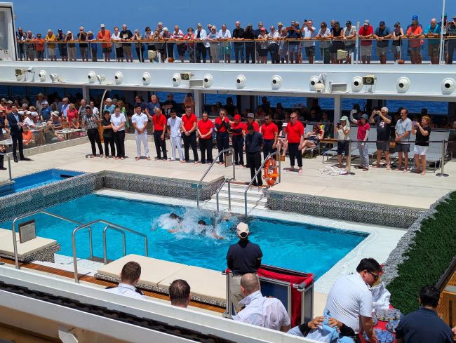 ceremony for the new crew who ended up in the pool.