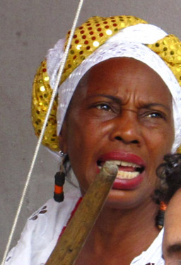 We came upon a gathering around a besequinned woman