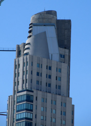 buildings with tops constructed to look like ship smoke stacks.