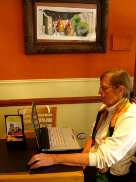 Internet cafe listening to cleverly DJ'd American rock 'n