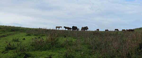 On our walk we found a herd of horses up on the hill that sort of edged away as we approached.