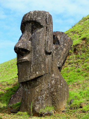 and found some more fallen moai. We ate our snack of Fruit Loops--we were