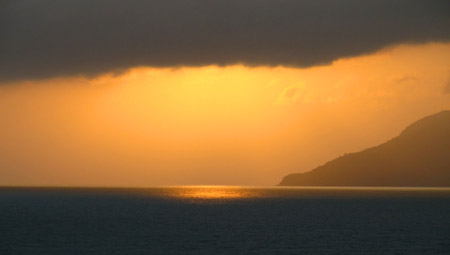 the bow of the ferry we approach Circular Cay. Ho-Hum, it's the
