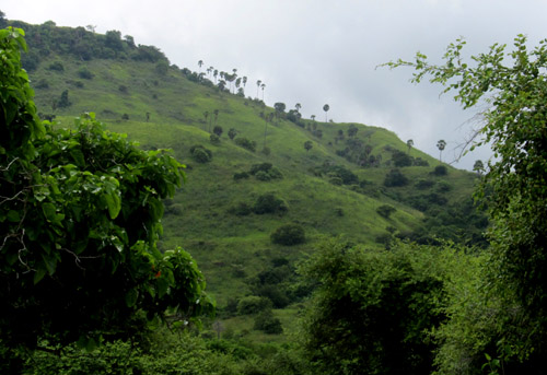 Looking back up the slopes, the landscape looks exotic and inviting. The