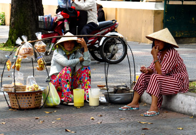 open-air restaurant for a Tiger beer. A cop/guard, in the background, keeps order here.