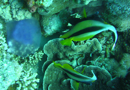 Our dive site is an hour boat-ride out to Panorama Reef, an atoll