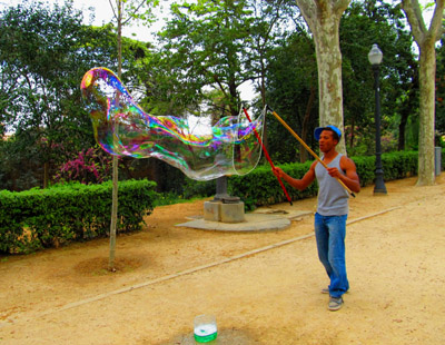 A bubble artist plies his trade in front of the museum.