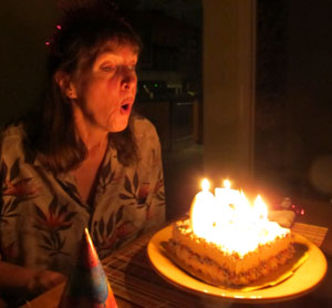 We set out on a 21-day Caribbean cruise leaving from Ft. Lauderdale. Our routine is to rent a car the day before the cruise and drive south to Dori and Aaron's house in Lake Worth to spend the night. The morning of the cruise we turn in the car and board. It's always great to visit with the kids, but this time the visit coincided with my 70th birthday. It's hard to wrap my head around entering this advanced decade, but Dori did a great job with the celebration topped off with an ice cream cake from Carvell's. Aaron provided a 5-minute fireworks show out in the street. The next morning we were off.