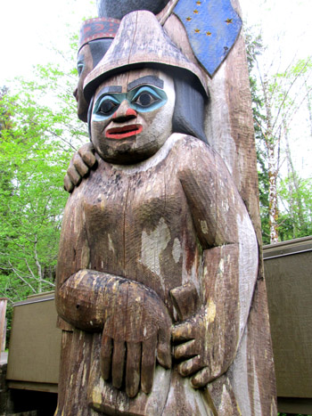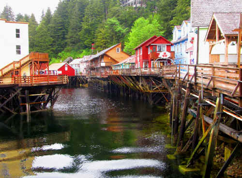The salmon swim up this creek to spawn and a fish ladder is in place to allow them