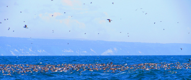 When eagles harass the murres, they take flight or drop to the water.