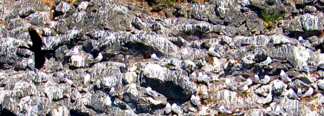 murre nests on top in dense colonies.