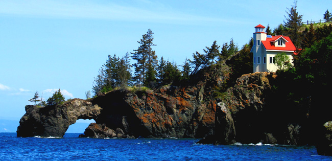 A natural bridge at one end of Gull Island.