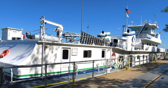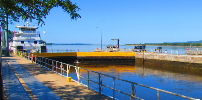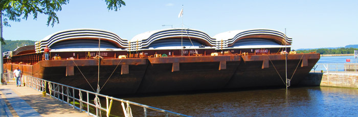 The pilot of the tug had no trouble pushing his load to the lock. At