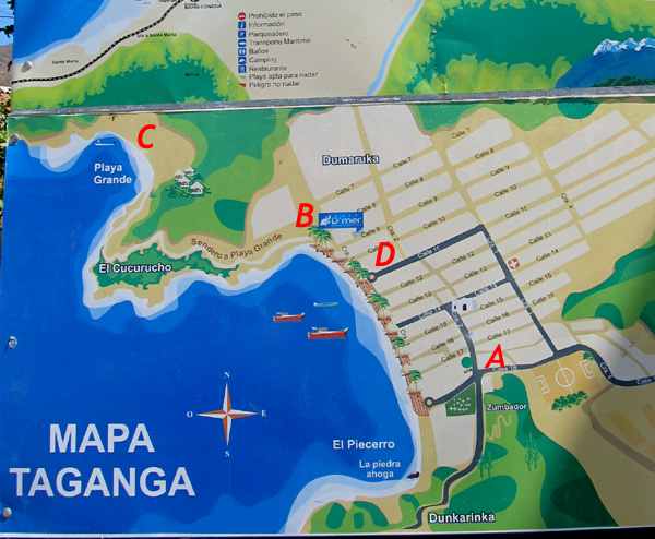 In Taganga there were all types of signs to commercial enterprises on the pole