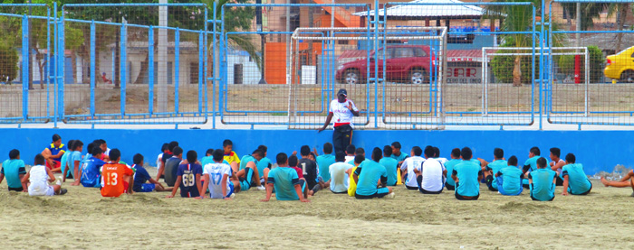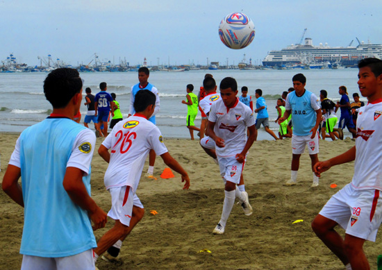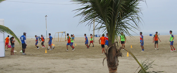 Serious soccer practice had taken over the beach where only walkers