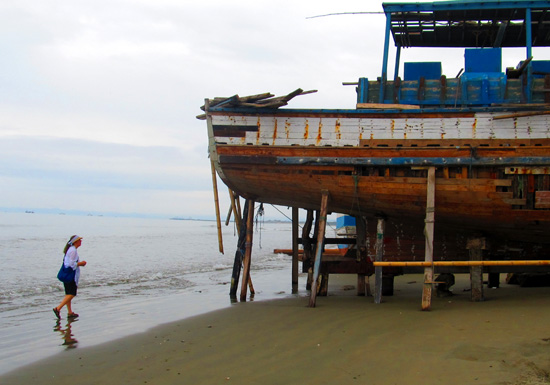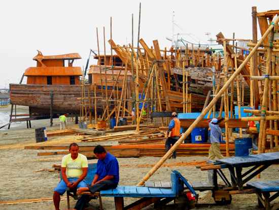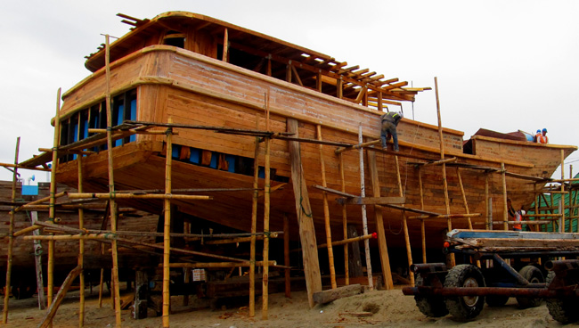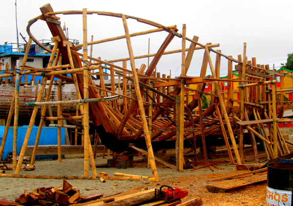 building operation begins. Boats old and new are propped up