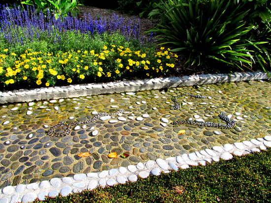 A water feature with worms or snakes made of stone.