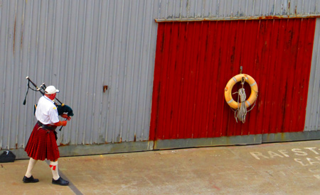 the rock, but wait... We heard a bagpipe. Were we in Scotland?