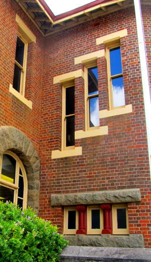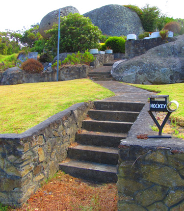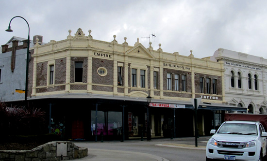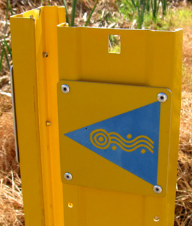 small trail markers near this Australian Wool Handlers building.