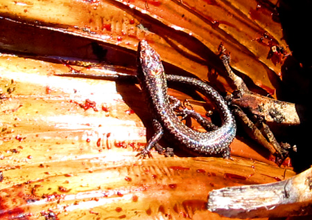 one of them that had died, a colorful lizard basked in the sun.