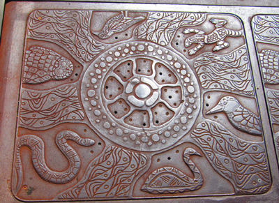 This curvy bench and tile patio are based on Banksias.
