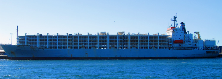 Across the river we'd seen this livestock ship for transporting