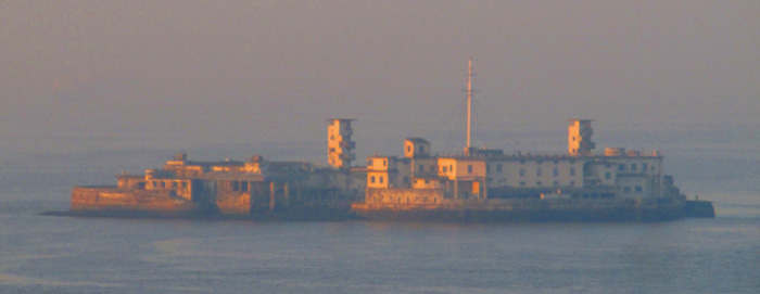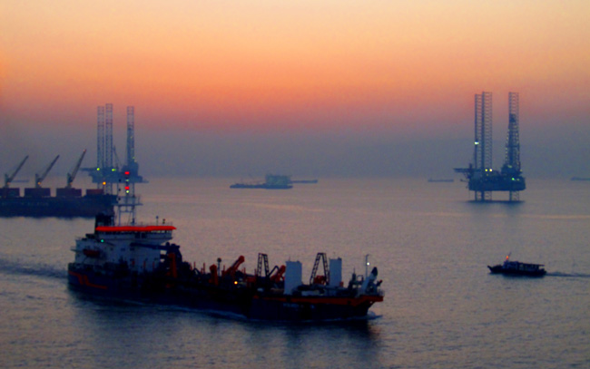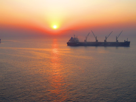 From the ship: the fading sunlight turned the thick air over the