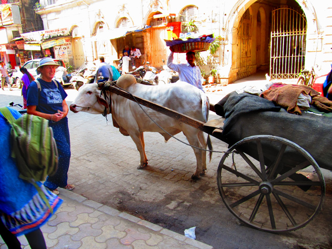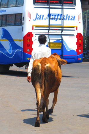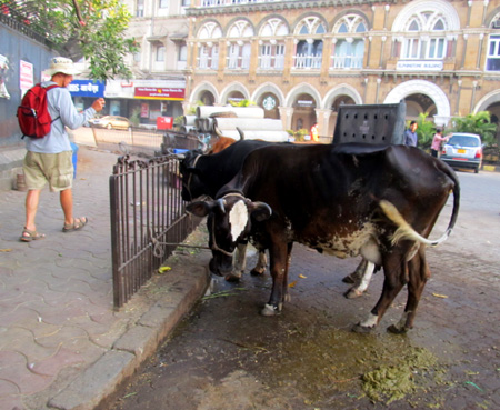 Street cows... Our plan today is to walk across the Mumbai Peninsula.