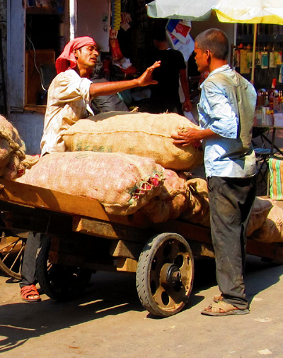with primitive looking hoes and placed their scrapings into wide