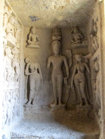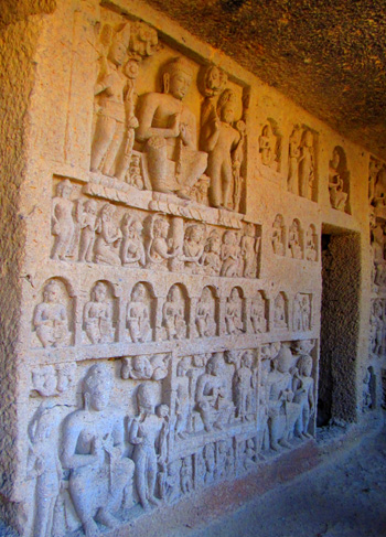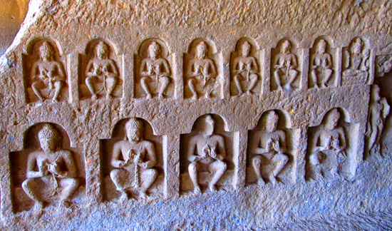 large Buddhas are carved into either side of the alcove.