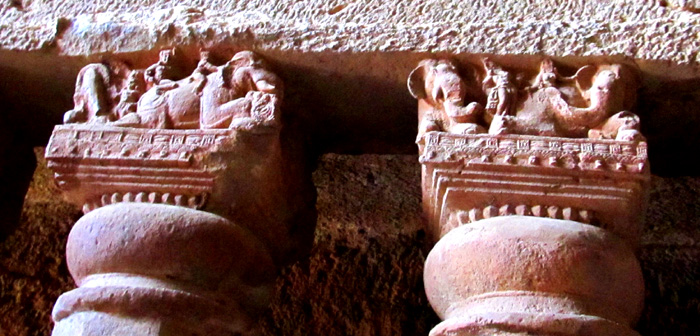 Details from the tops of the columns in this room all feature