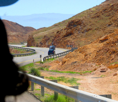 Dean, Jack , and Sandy round a hairpin turn in Snake Path.