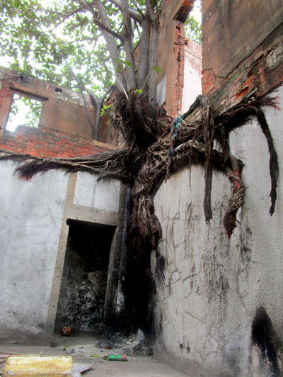 in the bottoms of the elevator shafts, they broke the light bulbs,