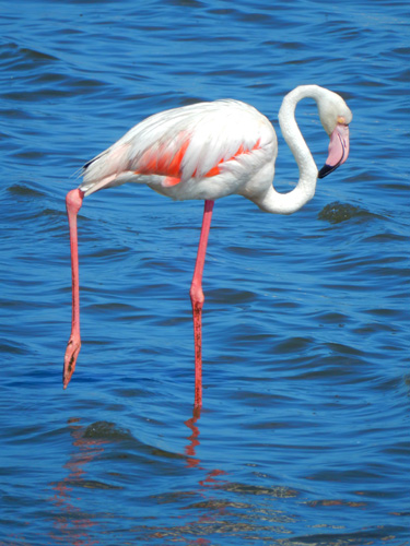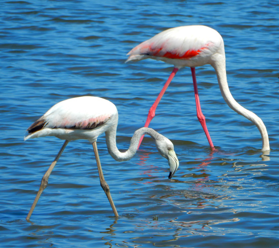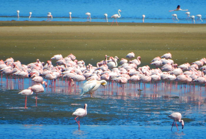 A Black-Winged Stilt and a Cape Cormorant mingled with the Great