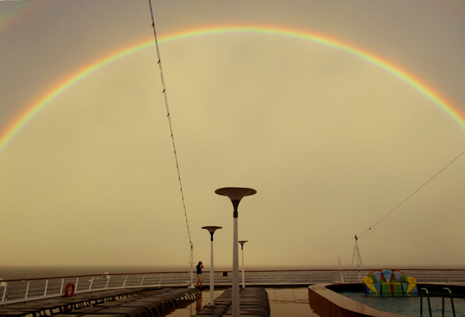 A huge rainbow from the back deck as we approached Honolulu on