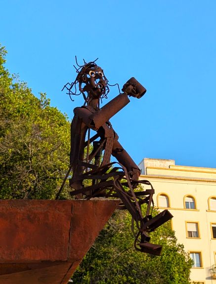 We liked the coffee guy sitting on the roof of a coffee bar. And