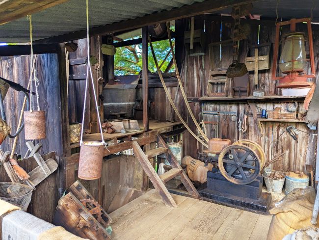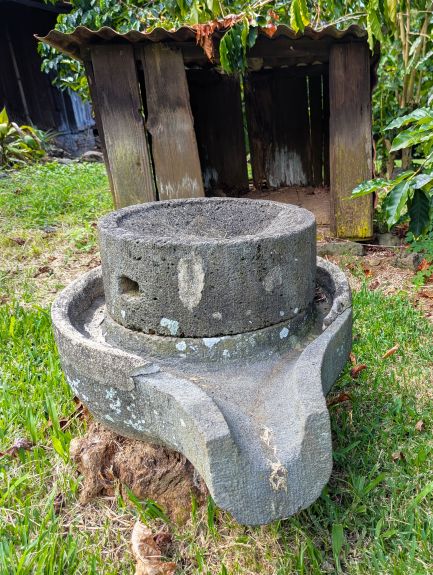 The farmhouse had a wood fire going. Also this huge cistern collected