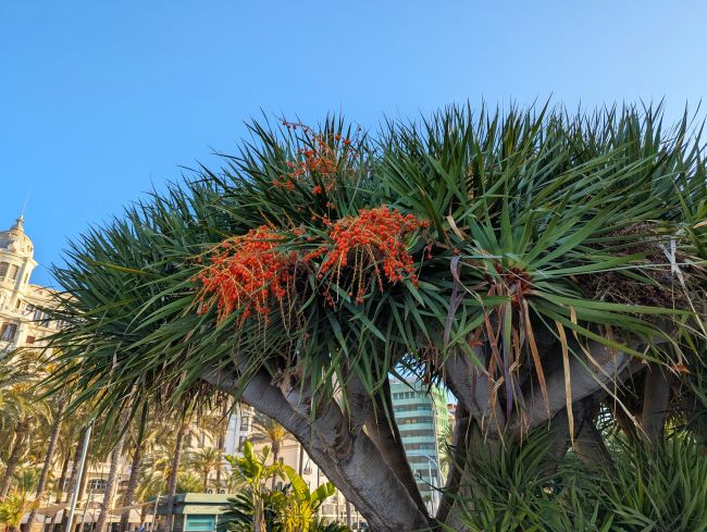 Canary Island dragon tree (Dracaena draco) fruiting.