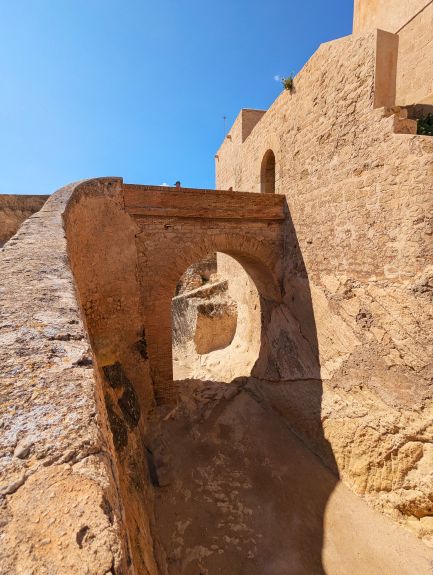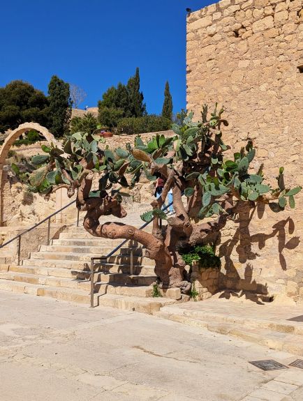 The tunnel through the wall. An ancient prickly pear cactus has