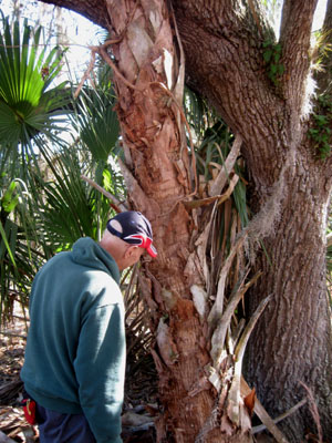 scraped the boots (left over palm fronds) from the tree trunk, it