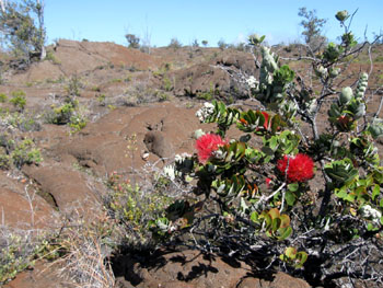 'Ohi'alehua looks like a compact bottle brush shrub.
