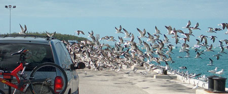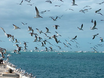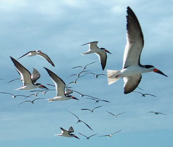 flock of Skimmers, Royal Terns and various sea gulls create quite a