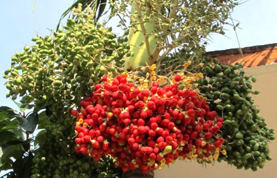 Some dates ripen on a palm and this guy is sweeping a terrace atop