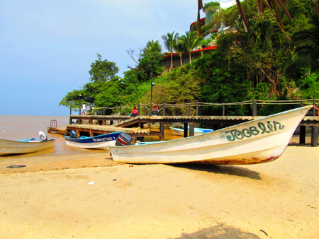 At low tide the Horcones River is blocked by a sand bar, but the tide