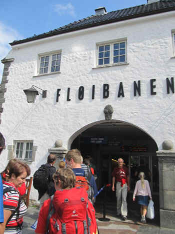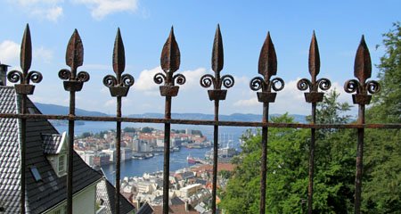 take the tram or funicular up to the top of Mount Floyen behind the