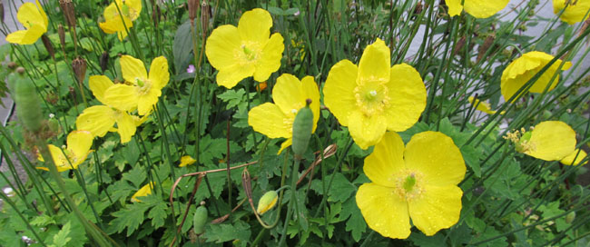 Icelandic poppies sprout like weeds in the sidewalk cracks.