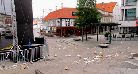 litter to the center of the walkways so the street sweeper can pick
