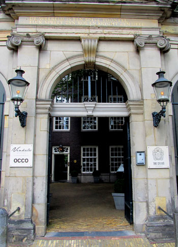 This hotel has a grand entrance with a fancy doorway into a