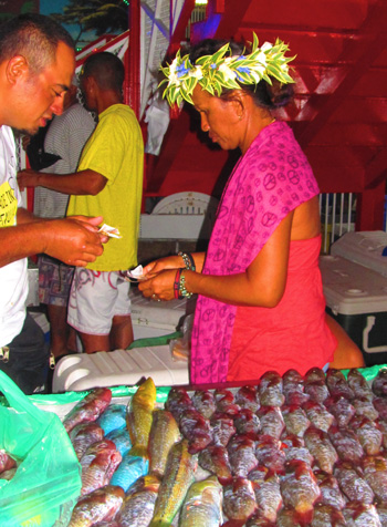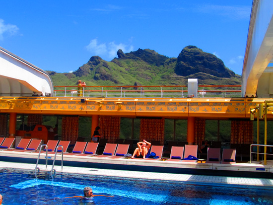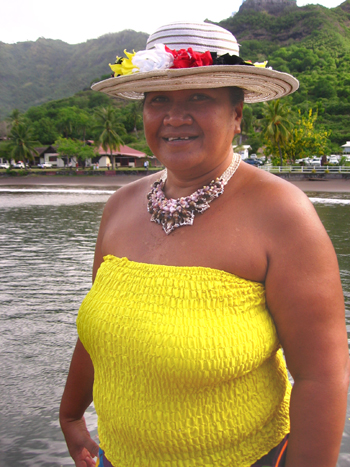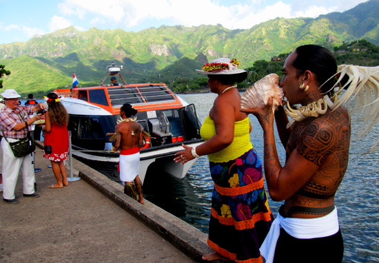 We took a photo of the greeters for the Paul Gauguin cruise ship on