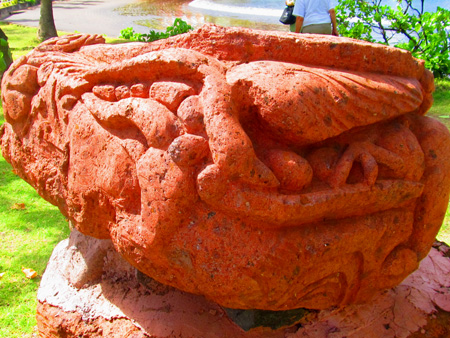 A nice variety of tikis and native carvings were arranged along the waterfront.